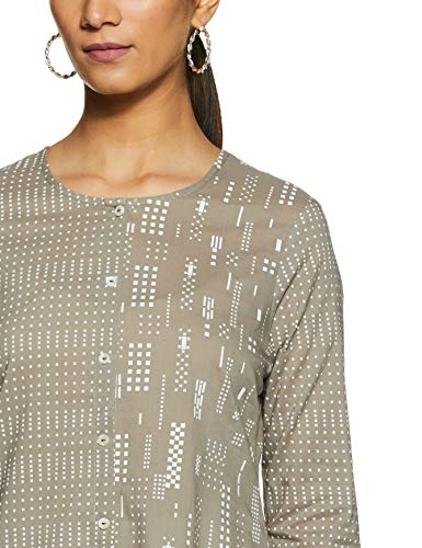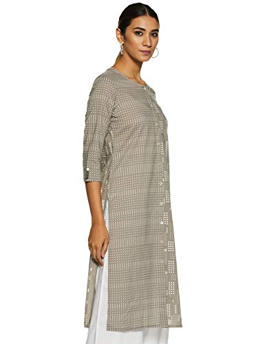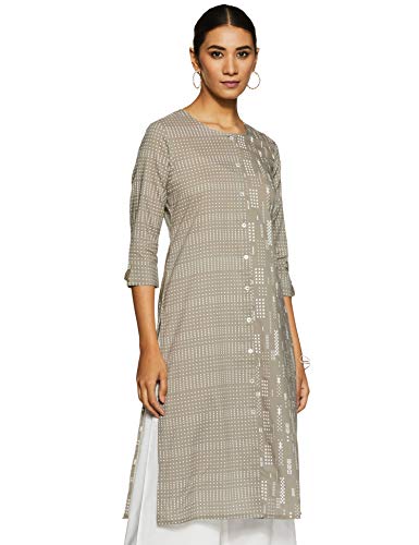 This straight kurta is designed with bold checks, three-quarter sleeves, button closure and a round neckline. Draw compliments on any occasion by teaming up with solid churidar and block heels.