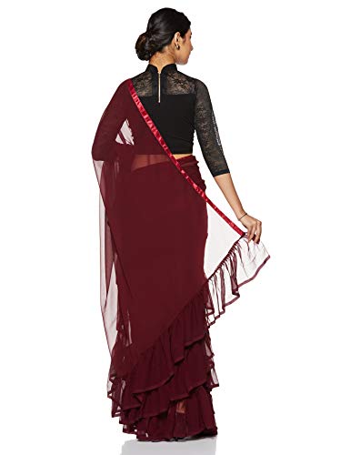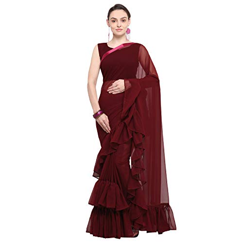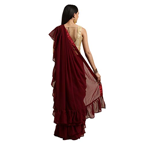 Womanista Georgette Ruffle Saree with Blouse Piece (FS9636_Maroon_Onesize)