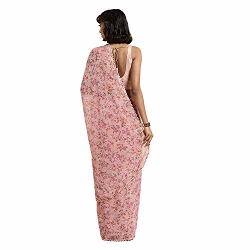 Specification: Womanista Women’s Poly Georgette Floral Printed Saree with Moti Lace (TKIM740_Pink_OneSize)