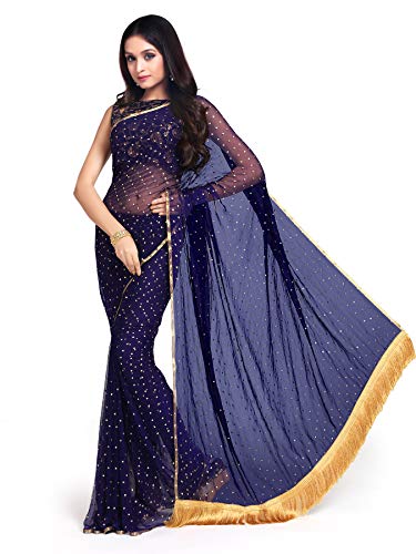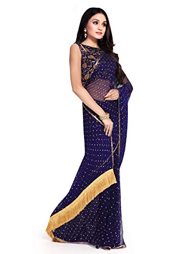 Womanista Blue Polyester Georgette Women saree comes with mukaish Embellished work and fringes on pallu and jacquard un-stitched Blouse. Considering the Embellished and mukaish sarees Womanista has come up with this piece at a pocket friendly price