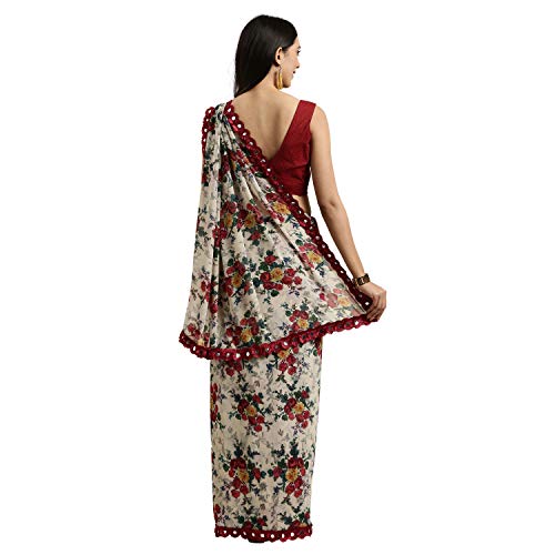 Specification: Womanista Women’s Floral Printed Poly Georgette Saree with Mirror Lace (TKIM812_Off White & Red)